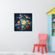 A bright and cheerful space scene with characters, planets, stars, dogs, rockets and more!