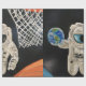 Original painting of a astronaut play ball with the earth. Created by using spay cans and acrylic paint.