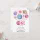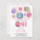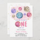 Magical galaxy outer space themed birthday invitation. Planets and stars in pink, purple, gold colorway.