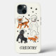 Space is pretty wild, especially when it's filled with some wild animals playing at being astronauts. Features illustrations of a tiger, a fox, a gorilla and a polar bear wearing retro style space helmets with black star graphics. This cell phone case is ready to be personalised with a name in black lettering.