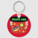 Space Jar on lid of jar filled with red gooeyness and spaceship, stars, moon and asteroid suspended inside.