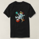 I give wanted to give this a 4 instead of a 5 because these Basic DARK T0shirts run unexpectedly SLIM or Narrow. Which is great if you do not have a potbelly, but I have a paunch. It isn't the shirt's fault that I've got a beer belly. The design and shirt itself is a quality cotton shirt. The color is more of a deep purple, but still a very pretty color. The Basic DARK T-shirts run a bit SLIMMER than the Basic Ts. The neck is a fraction narrower (or seems to be narrower) also. I'm a paunchy middle-aged woman and my neck is 12 inches (31cm) thick and the neckline fell about the same as in the photo of the man, and I had the desire to tug it a bit. So if you're a thick necked man or like loose shirts, be aware these are slimmer shirts. Once I get rid of my lockdown paunch it'll look great. The shirt washed well in cold water with no apparent bleeding. We don't have a dryer, so it hung dry. Did not shrink. Love the colors and the design. The design looks smaller on my shirt than it does on the model on-line. But still, it looks good on the shirt. The printing looks as it does on the model, just the size seems fractionally smaller. Washed garment in cold water, hung dry and design appeared unaffected.