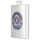 The product is a good size and came exactly as it was pictured. The lid is not attached to the flask, which could be dangerous on drunken nights... The print came out surprisingly well and looks very sharp. Would definitely recommend.