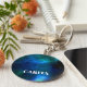 A custom keychain with a blue space background. Add your own name to this product by using the custom template.