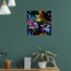 This poster has a colorful painting of planets with swirling glowing nebula's with stars. This art is highly detailed and would look great in a modern decor. Makes a great gift for someone that like space and astronomy.
