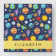 Space Pattern, Planets, Stars, Cosmos, Your Name Square Wall Clock