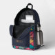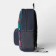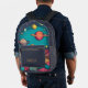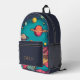 A custom design on a space planets background for a cool trendy look. The personalised monogram name in orange modern block typography can be replaced with your own name or custom text. The front pocket is a minimalist clean space blue. The perfect gift or accessory!