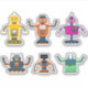 Six colourful custom robots.