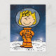 This Peanuts artwork celebrates the 50th Anniversary of the 1969 Apollo 10 orbit of the moon and the Apollo 11 moon landing. This design features Sally Brown in her orange space suit.