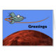 A cartoon space ship flies high over an alien planet. A great design for those sci fi fans out there.