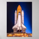 Space Shuttle Atlantis Poster features a photograph of Space Shuttle Atlantis, attached to its bright-orange external fuel tank and twin solid rocket boosters on Launch Pad 39A at NASA's Kennedy Space Centre in Florida At Night.
