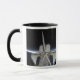 Space Shuttle Discovery intersecting the thin line of Earth's atmosphere, while docked with the International Space Station featured with STS-131.
