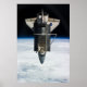 Space shuttle Discovery is featured in this image photographed by an Expedition 23 crew member on the International Space Station soon after the shuttle and station began their post-undocking relative separation. Undocking of the two spacecraft occurred at 7:52 a.m. (CDT) on April 17, 2010, ending a stay of 10 days, 5 hours and 8 minutes. The visit included three spacewalks and delivery of more than seven tons of equipment and supplies. Earth's horizon and the blackness of space provide the backdrop for the scene.