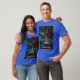 I give wanted to give this a 4 instead of a 5 because these Basic DARK T0shirts run unexpectedly SLIM or Narrow. Which is great if you do not have a potbelly, but I have a paunch. It isn't the shirt's fault that I've got a beer belly. The design and shirt itself is a quality cotton shirt. The color is more of a deep purple, but still a very pretty color. The Basic DARK T-shirts run a bit SLIMMER than the Basic Ts. The neck is a fraction narrower (or seems to be narrower) also. I'm a paunchy middle-aged woman and my neck is 12 inches (31cm) thick and the neckline fell about the same as in the photo of the man, and I had the desire to tug it a bit. So if you're a thick necked man or like loose shirts, be aware these are slimmer shirts. Once I get rid of my lockdown paunch it'll look great. The shirt washed well in cold water with no apparent bleeding. We don't have a dryer, so it hung dry. Did not shrink. Love the colors and the design. The design looks smaller on my shirt than it does on the model on-line. But still, it looks good on the shirt. The printing looks as it does on the model, just the size seems fractionally smaller. Washed garment in cold water, hung dry and design appeared unaffected.