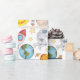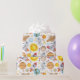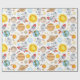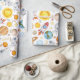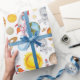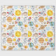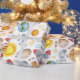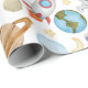 Space themed wrapping paper with planets, astronaut and other space elements.