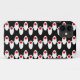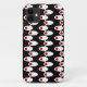 This phone case has a mid-century modern design of white ovals with red circles connected by white lines on a field of black. Want different colours? Message me.
