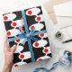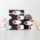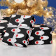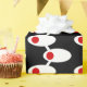 This wrapping paper has a mid-century modern design of white ovals with red circles connected by white lines on a field of black. Want different colours? Message me.