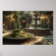Rustic spaghetti topped with sautéed broccoli rabe and olive oil, served in the romantic courtyard of a mediaeval Italian villa with ivy-clad walls and a softly lit fountain.