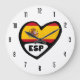 Spain Country Code ESP Flag Heart Large Clock