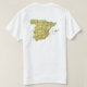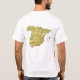 The front of this t-shirt bears a small Spanish flag with its familiar coat of arms on a yellow band with red bands above and below, while the back displays a relief map of Spain. Available on t-shirts, sweatshirts, polos, long-sleeves and more.