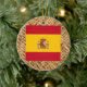 Spain Flag on Textile themed Ceramic Tree Decoration