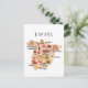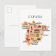 Spain travel map with popular tourist cities, attractions, and culture. White background.