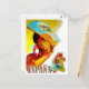 Spain, woman behind fan, vintage travel postcard