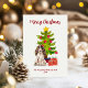 Celebrate the season with this adorable Spaniel dog holiday card! A festive green Christmas tree with ornaments, bows, and wrapped presents sets the perfect backdrop for a lifelike dog illustration. Personalise the front with your family name, your pet’s name, and the year, while the back features a charming red paw print pattern for a playful finishing touch. Perfect for dog lovers, pet parents, and families who want a unique holiday greeting that showcases their furry friend. I offer many different dog breeds in the collection below.