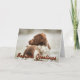 Cute spaniel puppy in the snow Greetings Card. Text reads "Season's Greetings". Text can be customised.