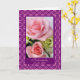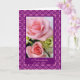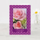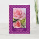 Tarjeta postal: "¡Felicidades en tu día! Personalise su mensaje! Birthday card with close-up of roses on purple background. Personalise your message! Photography by Maria Santos - Lusinhas do Sul