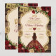 Spanish Burgundy Floral Rustic Wood Mis Quince Invitation