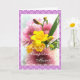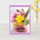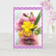 Greeting card in Spanish for mum's 65th birthday with lace frame and foto of a vase do yellow flowers on blue background. Tarjeta postal en espanol para el cumpleaños de mami. Personalise su Tarjeta - texto/ edad Photography by Maria Santos (Lusinhas do Sul)