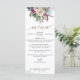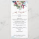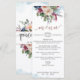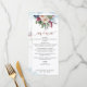 Delight your guests with this exquisite Menu card in Spanish. Also available in English. Design coordinating our "Pastel Floral Quinceañera" invitations. Set apart design featuring on the top a unique blush, pink, berry, burgundy, pale blue and navy floral arrangement, delicate blue watercolor stains and on the bottom your name and date. Modern hand written calligraphy details and rose gold elements in both front and back. Beautiful design on the back with big floral bouquet with central stripe with rose gold details, and quinceañera's name. Part of our "Pastel Floral" collection.