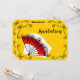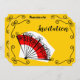 Whimsical design drawn in a retro style featuring a lacy fan souvenir from a Spanish holiday on a golden yellow background. A customisable design in black, white, red and yellow for you to personalise with your own text, images and ideas. An original digital art image.