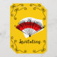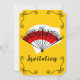 Whimsical design drawn in a retro style featuring a lacy fan souvenir from a Spanish holiday on a golden yellow background. A customisable design in black, white, red and yellow for you to personalise with your own text, images and ideas. An original digital art image.
