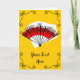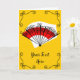 Whimsical design drawn in a retro style featuring a lacy fan souvenir from a Spanish holiday on a golden yellow and white background. A customisable design in black, white, red and golden yellow for you to personalise with your own text, images and ideas. An original digital art image.