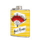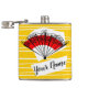 Whimsical design drawn in a retro style featuring a lacy fan souvenir from a Spanish holiday on a golden yellow striped background. A customisable design in black, white, red and yellow for you to personalise with your own text, images and ideas. An original digital art image.