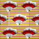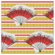 Whimsical design drawn in a retro style featuring a lacy fan souvenir from a Spanish holiday on a decorative striped background. A customisable design in black, white, red and golden yellow for you to personalise with your own text, images and ideas. An original digital art image created by QuirkyChic.