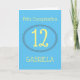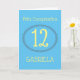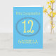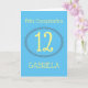 Blue and Yellow Bilingual Spanish language birthday card perfect for anyone of any age. Sky Blue Background with a nice big Yellow 12 for a twelve year old. This can be changed to any age you like, and you can also change the name by clicking Personalize. Inside of this dual language card says Happy Birthday, and you can change that to another message of your choosing. Thanks for supporting WindyDesign's Zazzle shop!