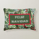 Decorate your living space during the seasonal holidays while celebrating your Spanish heritage with this attractive accent pillow that features an image of variegated Holly leaves and red berries. On one side of pillow is printed Feliz Navidad and is centered in a dark green rectangle with red border. Select your pillow fabric style.