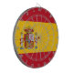 This design features the flag of Spain (known in Spanish as "España"), officially known as the Kingdom of Spain (in Spanish, "Reino de España"), which is a country in Southwestern Europe with some pockets of territory across the Strait of Gibraltar and the Atlantic Ocean. Its continental European territory is situated on the Iberian Peninsula. Moreover, the African enclaves of Ceuta, Melilla and Peñón de Vélez de la Gomera make Spain the only European country to have a physical border with an African country, in this case Morocco. The country's mainland is bordered to the south and east by the Mediterranean Sea except for a small land boundary with Gibraltar; to the north and northeast by France, Andorra, and the Bay of Biscay; and to the west and northwest by Portugal and the Atlantic Ocean respectively. The capital and largest city of Spain is Madrid. Other major cities and towns in Spain include Barcelona, Valencia, Seville (Sevilla), Zaragoza, Málaga, Murcia, Palma, Las Palmas, Bilbao, Alicante, Córdoba, Valladolid, Vigo, Gijón (Xixón), L'Hospitalet de Llobregat, Vitoria-Gasteiz, A Coruña, Elche and Granada.