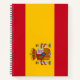 This design features the flag of Spain (known in Spanish as "España"), officially known as the Kingdom of Spain (in Spanish, "Reino de España"), which is a country in Southwestern Europe with some pockets of territory across the Strait of Gibraltar and the Atlantic Ocean. Its continental European territory is situated on the Iberian Peninsula. Moreover, the African enclaves of Ceuta, Melilla and Peñón de Vélez de la Gomera make Spain the only European country to have a physical border with an African country, in this case Morocco. The country's mainland is bordered to the south and east by the Mediterranean Sea except for a small land boundary with Gibraltar; to the north and northeast by France, Andorra, and the Bay of Biscay; and to the west and northwest by Portugal and the Atlantic Ocean respectively. The capital and largest city of Spain is Madrid. Other major cities and towns in Spain include Barcelona, Valencia, Seville (Sevilla), Zaragoza, Málaga, Murcia, Palma, Las Palmas, Bilbao, Alicante, Córdoba, Valladolid, Vigo, Gijón (Xixón), L'Hospitalet de Llobregat, Vitoria-Gasteiz, A Coruña, Elche and Granada.