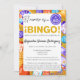 ¡Celebra un memorable 60º cumpleaños con esta animada invitación de fiesta temática de bingo en español! Con un diseño colorido que destaca el número 60 en una bola de bingo, esta invitación mezcla caligrafía elegante y texto moderno en bloque para un toque festivo y divertido. Perfecta para hombres y mujeres que conmemoran este importante hito, el texto es totalmente personalizable para adaptarse a tu evento. ¡Haz que tu 60º cumpleaños sea realmente inolvidable con esta divertida invitación de bingo!