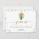 Thank your guests and Godparents with style! Card in Spanish. Also available in English. Exquisite Religious Event Thank You card with gorgeous golden cross surrounded by watercolor greenery in pale green, mint, and pale blue turquoise tones. Golden "Thank You" phrase in modern hand written Calligraphy. Delicate blue turquoise and green watercolor stains on the bottom and dainty decorative foliage on the top. Unisex design ideal for both boys and girls. Great for Baptism, First Communion and Confirmations. Back in pale green mint tone. Coordinating invitations and event products available. Part of our "Unisex Elegant Greenery Religious Events Collection"