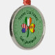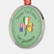 Metal Christmas ornament showing the flags of Spain, Ireland and United States of America, this shamrock was designed to celebrate Spanish holidays, Irish holidays (such as St. Patrick's Day), and USA holidays (such as 4th of July). Words above read THREE CULTURES. Words below read ONE YOURNAME. Words are in Celtic style, dark green, circular letters. To personalize, add your name to the appropriate spot. To make a customized gift just add someone else's name. Background is light green squiggly squares.