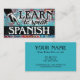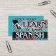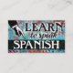 Colourful arty Learn To Speak Spanish business cards in turquoise, aqua, red, yellow. Spanish language Instruction business cards.