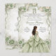 Elegant Mexican Mis Quince Sage Green Floral Bow Coquette Sweet 16th Party Invitation