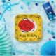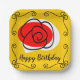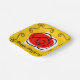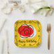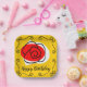 Mid-century design drawn in a retro style featuring a red rose souvenir from a Spanish holiday with swirled corners on a golden yellow background. A customisable design in black, white, red and yellow for you to personalise with your own text, images and ideas. An original digital art image.