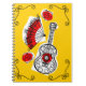 Whimsical design drawn in a retro style featuring souvenirs from a Spanish holiday; a wrought iron guitar, lacy fan and red rose. A customisable design in black, white, red and golden yellow for you to personalise with your own text, images and ideas. An original digital art image.