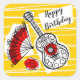 Whimsical design drawn in a retro style featuring souvenirs from a Spanish holiday; a wrought iron guitar, lacy fan and red rose. A customisable design in black, white, red and golden yellow for you to personalise with your own text, images and ideas. An original digital art image created by QuirkyChic.